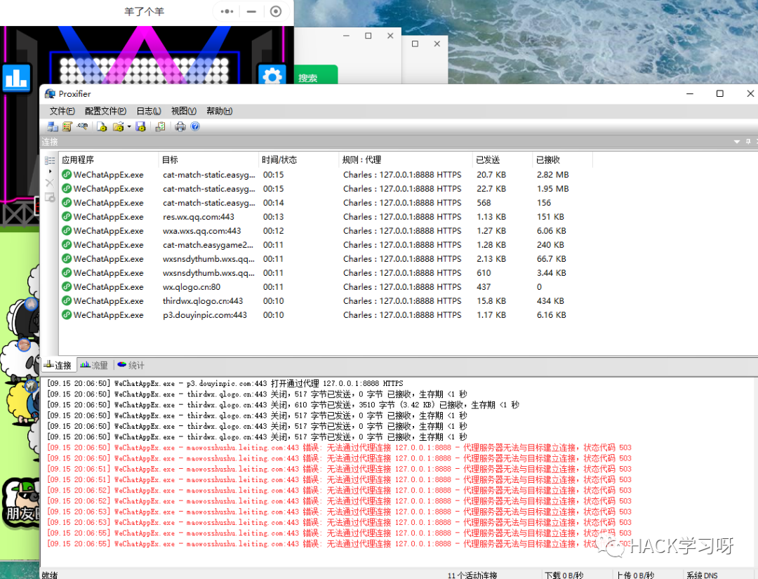 如果上述代理设置都没问题的话,打开游戏之后,Proxifier会显示这样