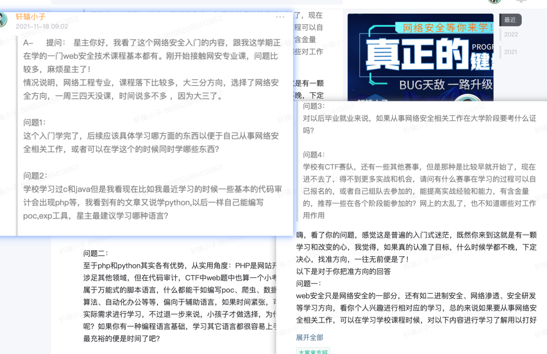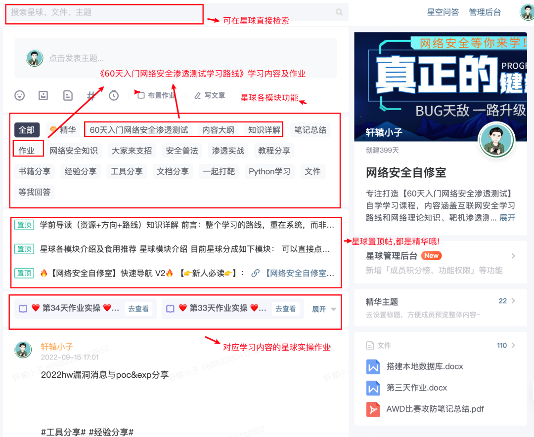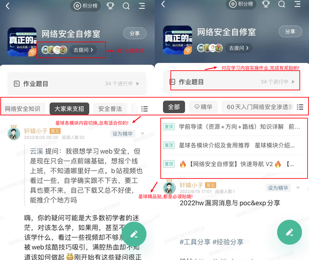 知识星球是小轩辕的 付费 网络安全学习圈,不同于网上免费的知识分享,在星球内我和其他安全大佬会 1 对 1 解答学习网络安全的问题、定制学习路线和学习目标