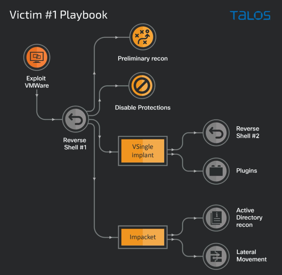 研究人员观察到朝鲜政府支持的APT组织Lazarus在2022年2月至2022年7月期间进行了恶意活动。其入口向量包括成功利用VMWare产品中的漏洞在企业网络中建立初步立足点,然后部署该组织的定制恶意软件植入程序VSingle和YamaBot。除了这些已知的恶意软件家族之外,还发现了一种以前未知的恶意软件植入物的使用,将其称之为“MagicRAT”。