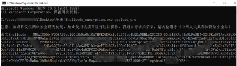 Shellcode_encryption.exe payload.c4、配置ShellCode加载器,将生成的密文ShellCode 填至 ShellCode_Loader.py 里的 Data = '密文Shellcode' 处 示例: