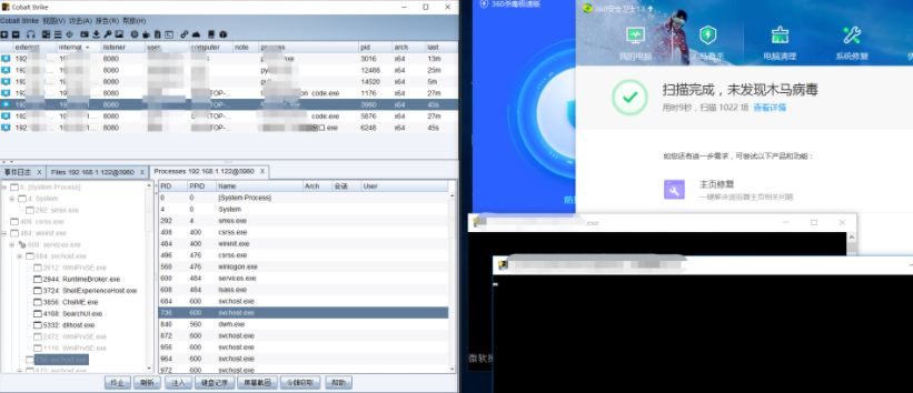 目前测试免杀360&火绒&电脑管家&Windows Defender(其他杀软未测试)。