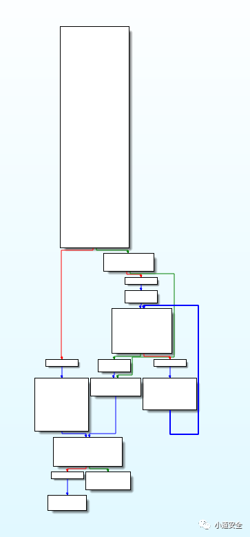 通过下图IDA的代码流程图,可以看到代码控制流扁平化保护后,整个流程就变得复杂化了。这就让代码的安全性上升一个层次了,这样逆向分析还原代码功能的成本就大大提高了。