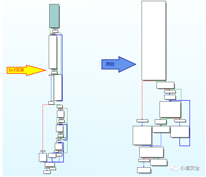 -mllvm -bcf,它的全称Bogus Control Flow,也称为虚假控制流。这个主要原理就是在当前基本块之前添加一个新的基本块用来修改函数调用图,这个新的基本块包含一个不透明的谓词,通过有条件地跳转到原来的基本块。原始的基本块也会被克隆并填充随机的垃圾指令。