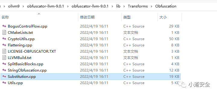 -mllvm -sub,它的全称Instructions Substitution,它又称为指令替换,这个的原理可以理解为就是不改变功能的前提下,将简单的指令替换成更复杂的指令,当有多个等效指令序列可用时候,会随机选择一个指令进行替换。这个混淆它并不会增强过多的安全性,因为它可以通过重新优化生成的代码轻松删除,如果选择使用随机生成器以不同数值作为种子,指令替换会在生成的二进制文件中带来多样性。