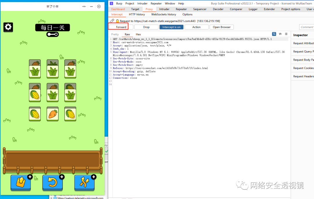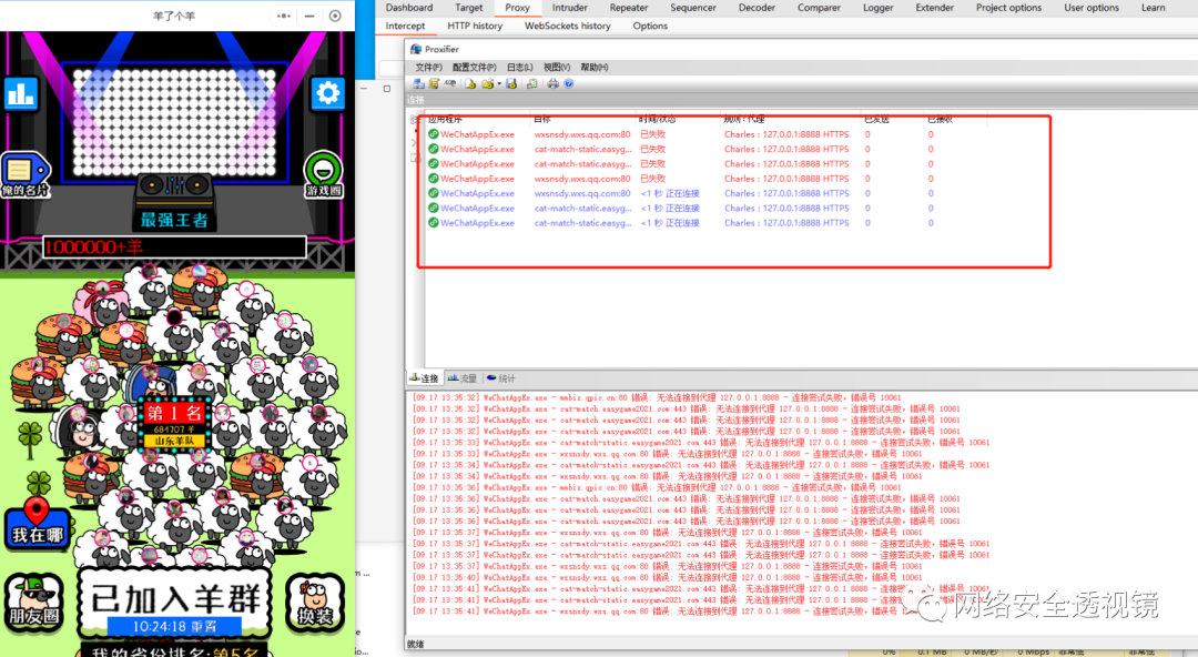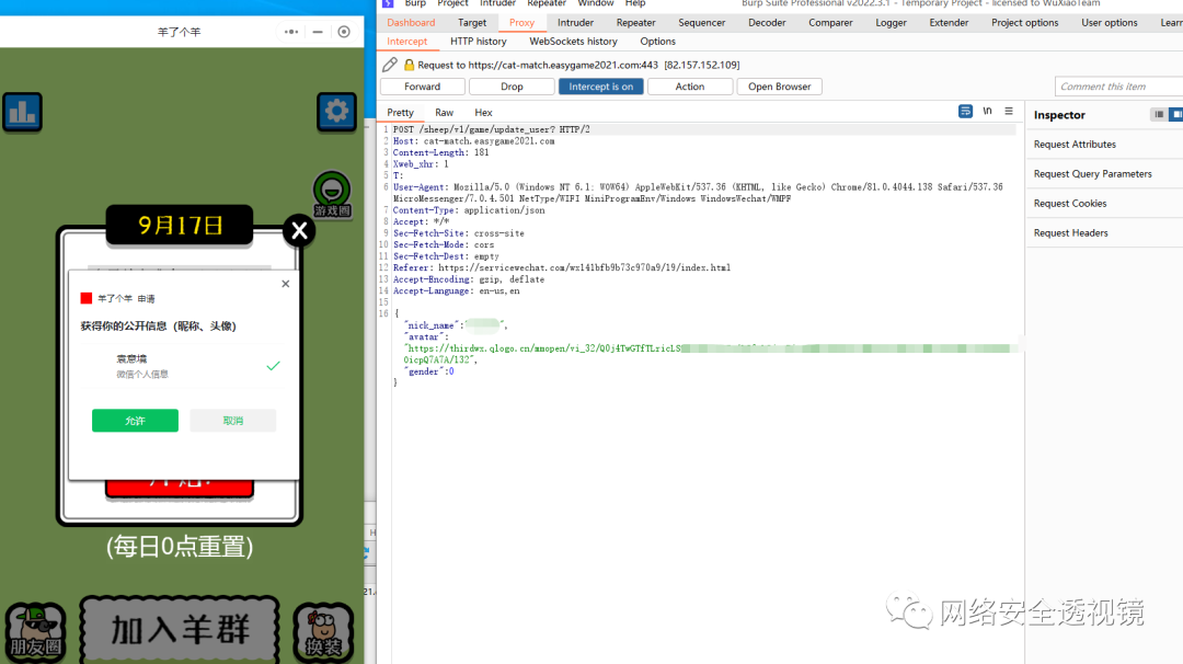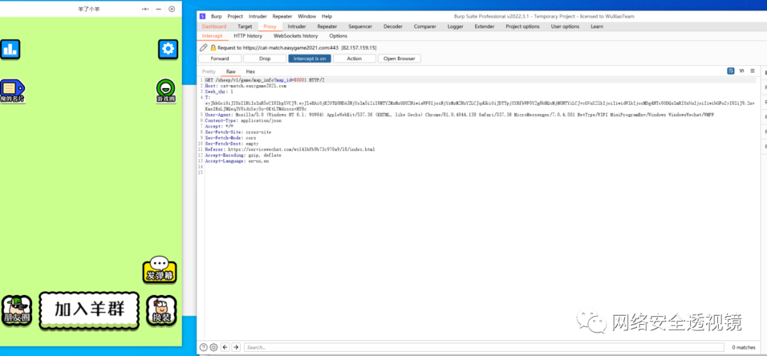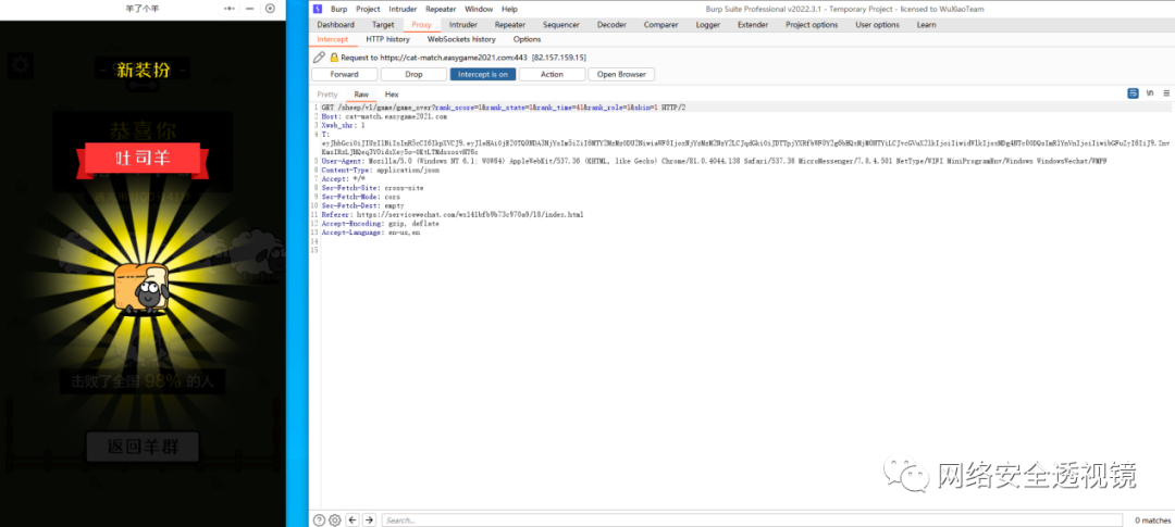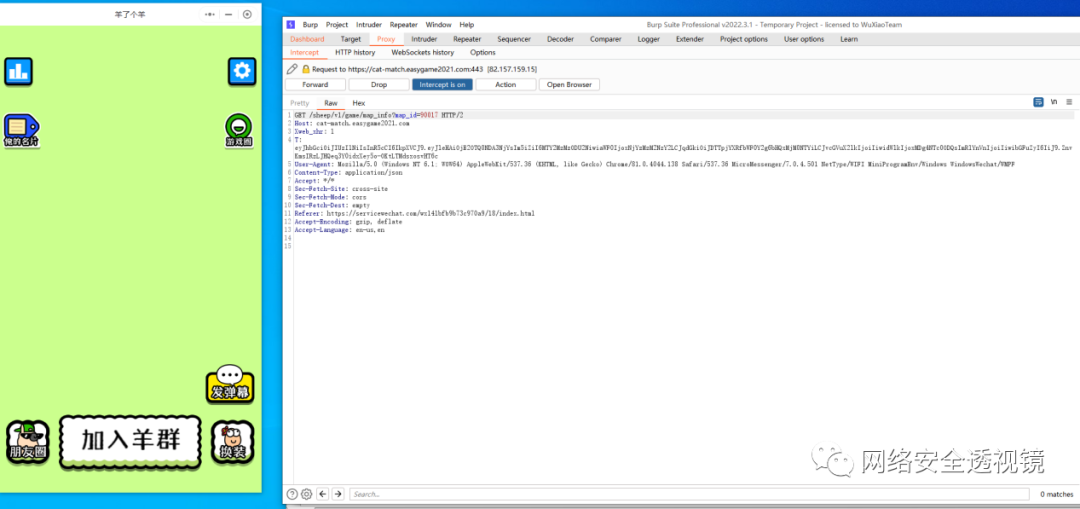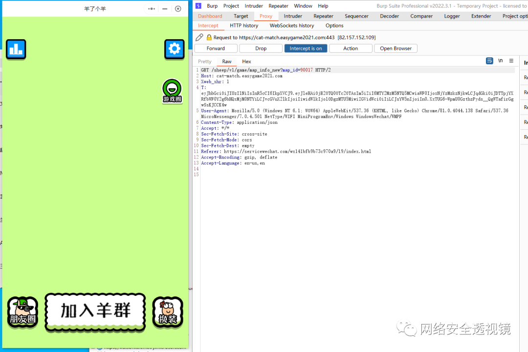 3、抓不到小程序请求包:小程序登录授权时候关掉拦截,登录成功后,进入羊群时再开启拦截。
