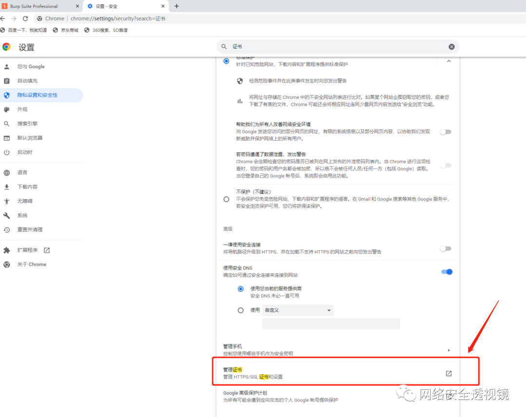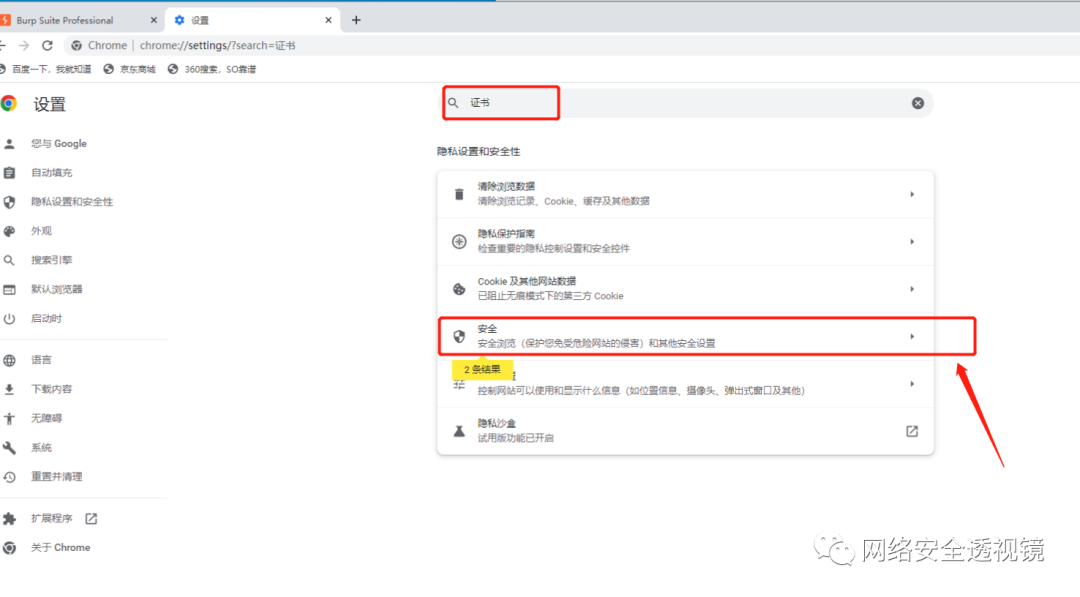 打开谷歌浏览器,输入127.0.0.1:8080 下载证书-->在设置里面搜索证书-->