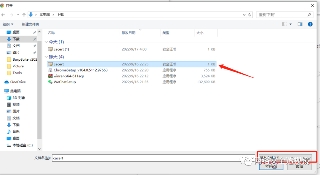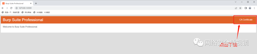 1.3 监听端口设置完成后,安装burpsuite证书。