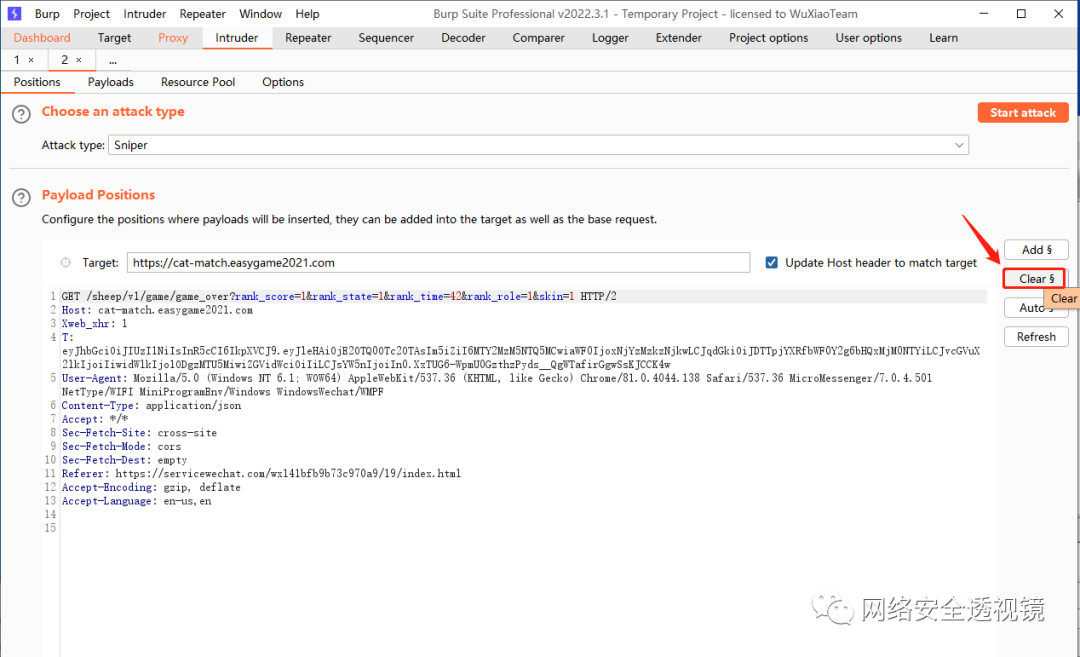 第二关通关后,等几秒,抓取通关成功后的数据包,然后使用burp进行重放攻击刷新通关次数。登录成功后就获取了登录凭证参数 T , 这个时候可以直接写两行代码,不停的刷,可以不用工具重放攻击。