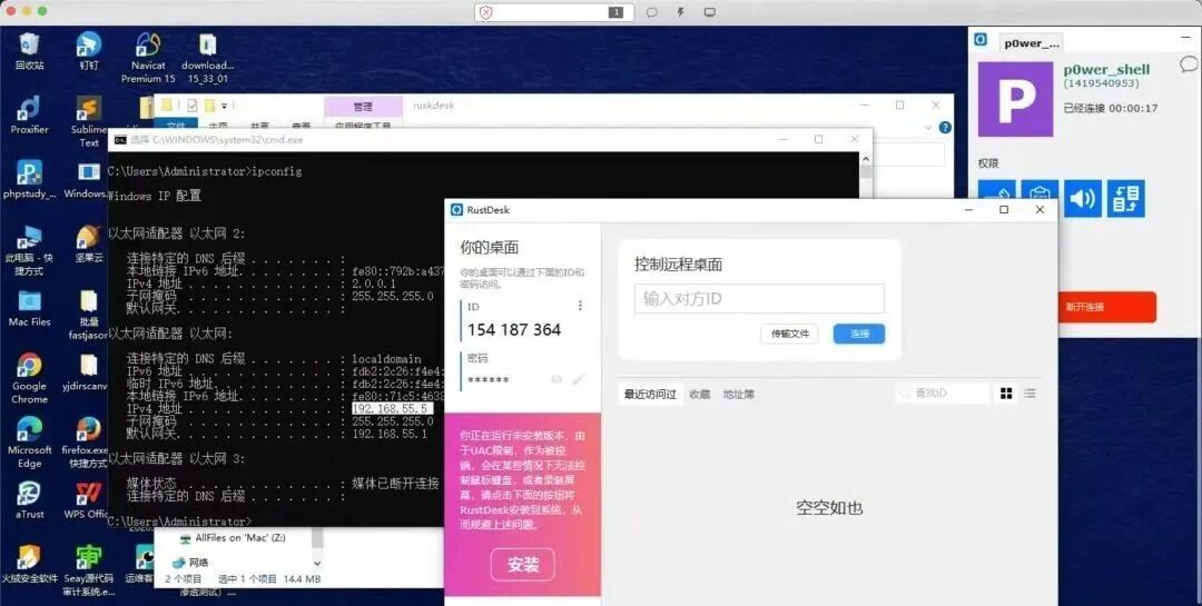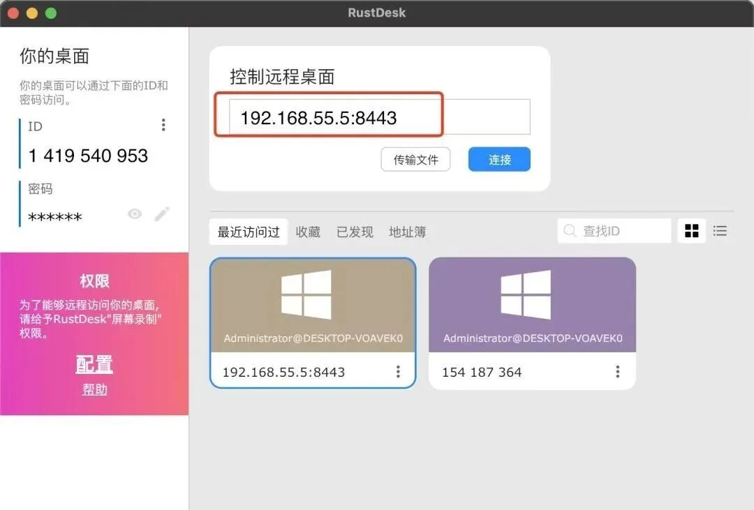 有时候我们打点控了一台跳板机,在内网有一台服务器有webshell权限,但是这台机器又不出网,而且上面装了多个杀软,防护开到最严,你又不知道目标账号密码,这时候你许多操作都会受限,这种场景还是挺常见的。这时候如果能远程过去把杀软退掉可能是一种捷径,而RustDesk就支持在内网使用IP进行直连。