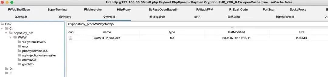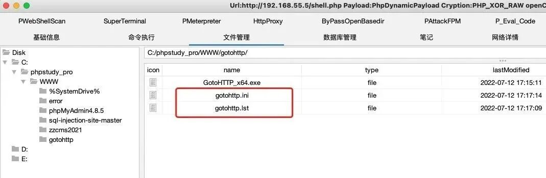 在哥斯拉中,gotohttp.exe目录下直接生成了配置文件