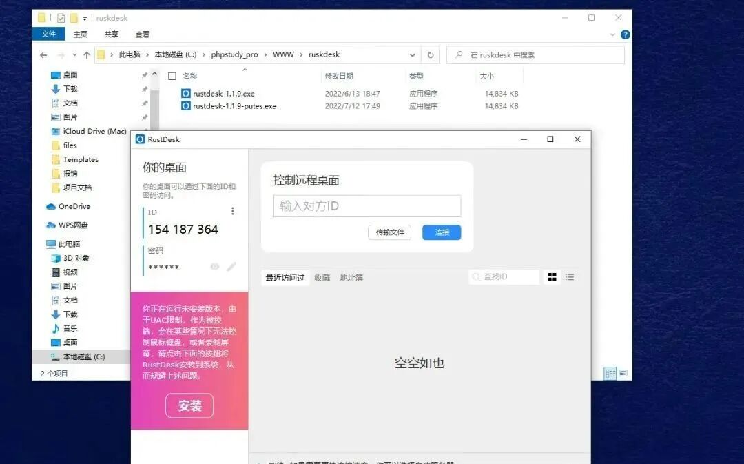 (1)要下载RustDesk的portable版本,不要下载puts版本。portable版本免安装,puts版本会弹框提示安装