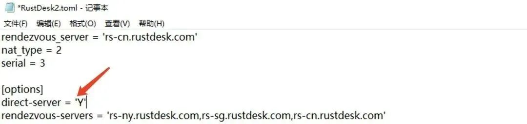 针对这个问题,我们可以修改配置文件RustDesk2.toml,在options下添加一行