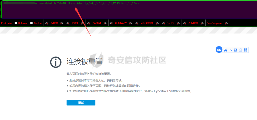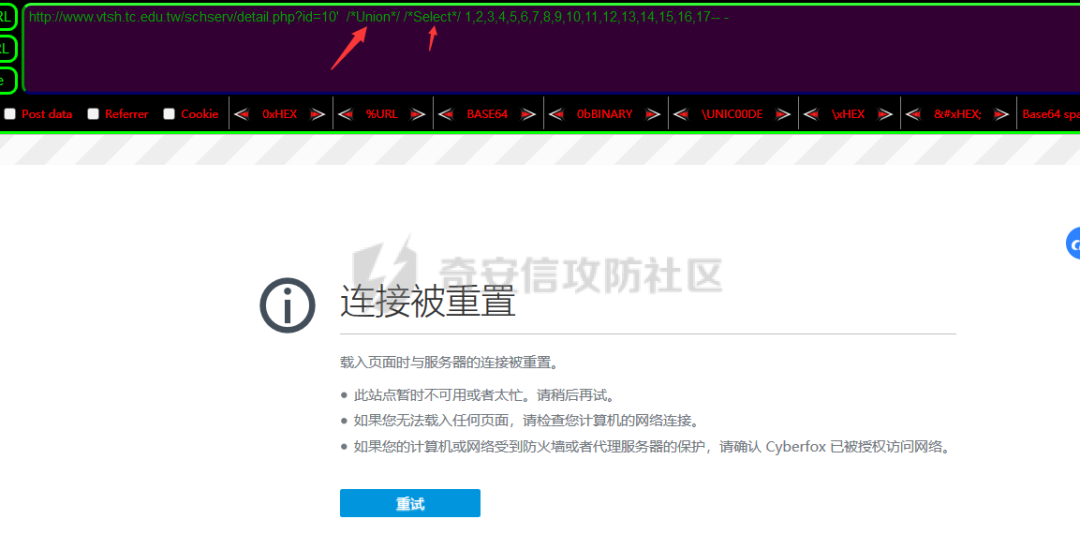 /!order/ /!by/ 10-- -经测试发现内联无法绕过union select,这个站强制拦截 union 和 select关键字