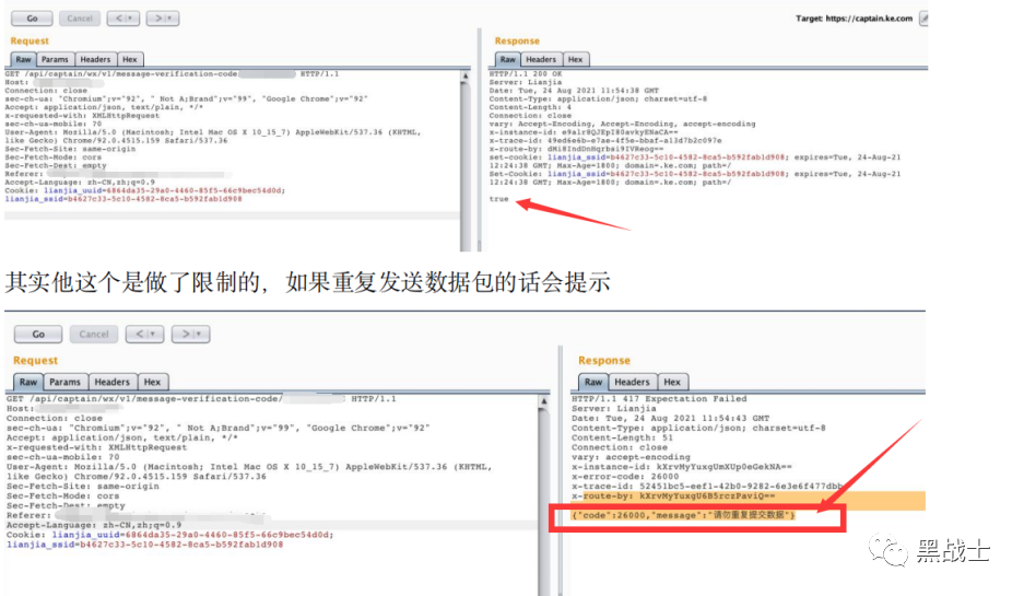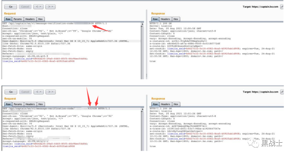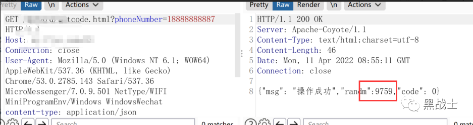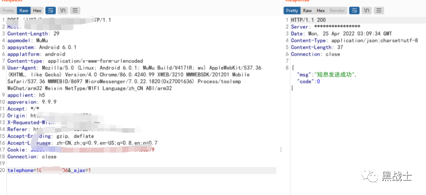 用户绑定了手机号,正常来说是获取绑定手机号的短信,通过burp修改成其他手机号