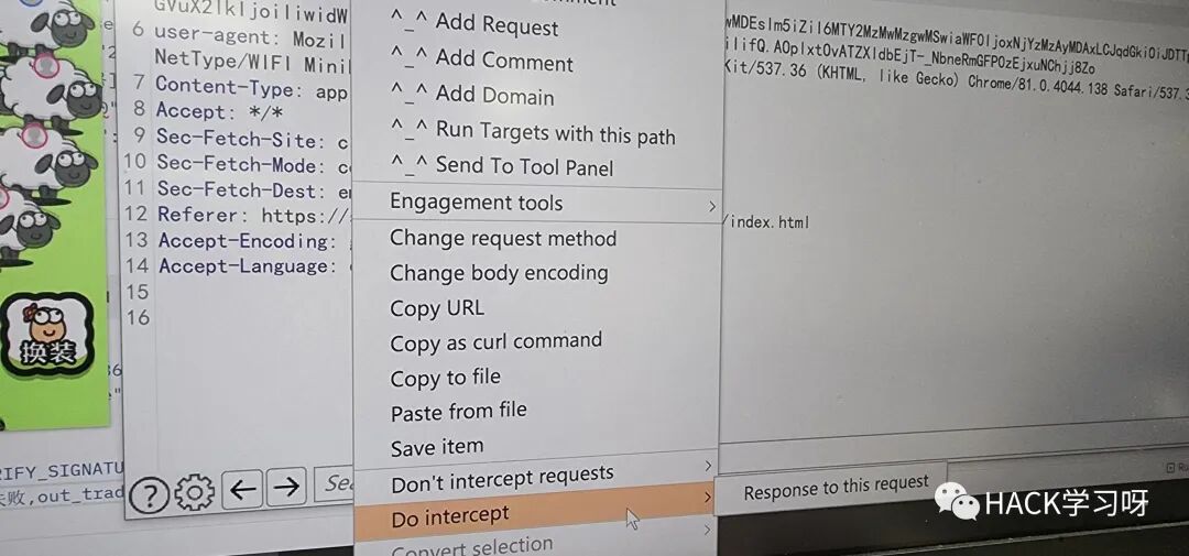 第三步,鼠标点击右键,选择Do intercept,再选择Response this request