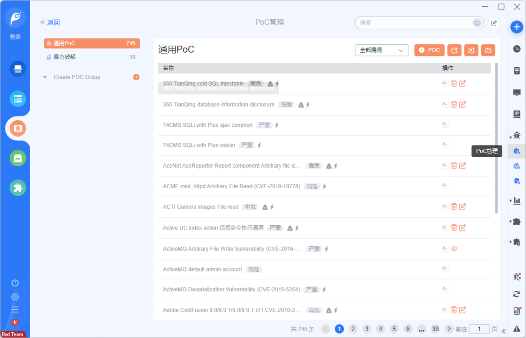 支持自定义 PoC 及弱口令字典,让安全人员自定义属于自己的武器库,增强攻击力。