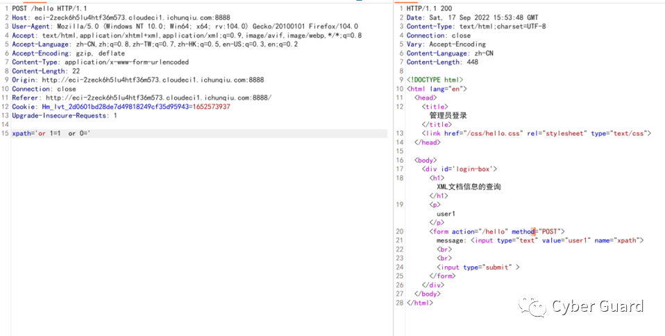 #payload = f"-1'or substring(name(/root/user/*[1]), {j}, 1)='{i}' or '0'='" #username