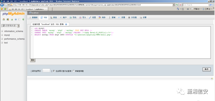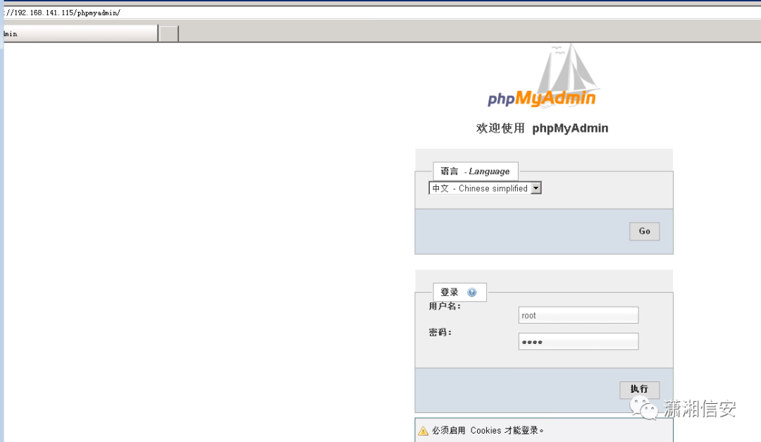 http://192.168.141.115/phpmyadmin/尝试写入webshell