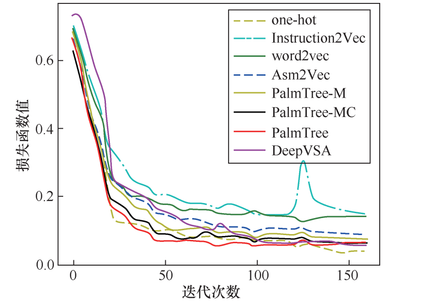 ■ 和原DeepVSA相比,PalmTree的收敛速度更快(如图8所示),这说明指令嵌入模型的确能够加速下游任务的训练过程。