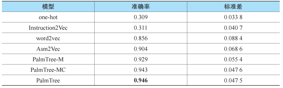 ■ PalmTree-M:仅使用MLM训练的PalmTree模型。