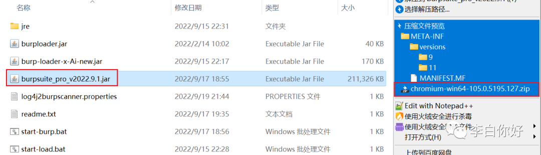 从BurpSuit官网下载最新版安装包,替换掉chromium-win64-105.0.5195.127.zip,然后打包成jar