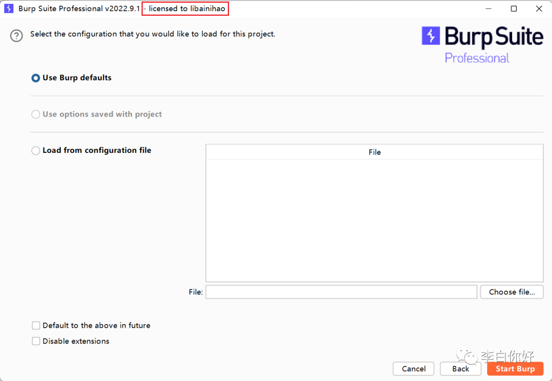 2、新电脑没有安装过BurpSuit的要用start-load.bat 注册一下
