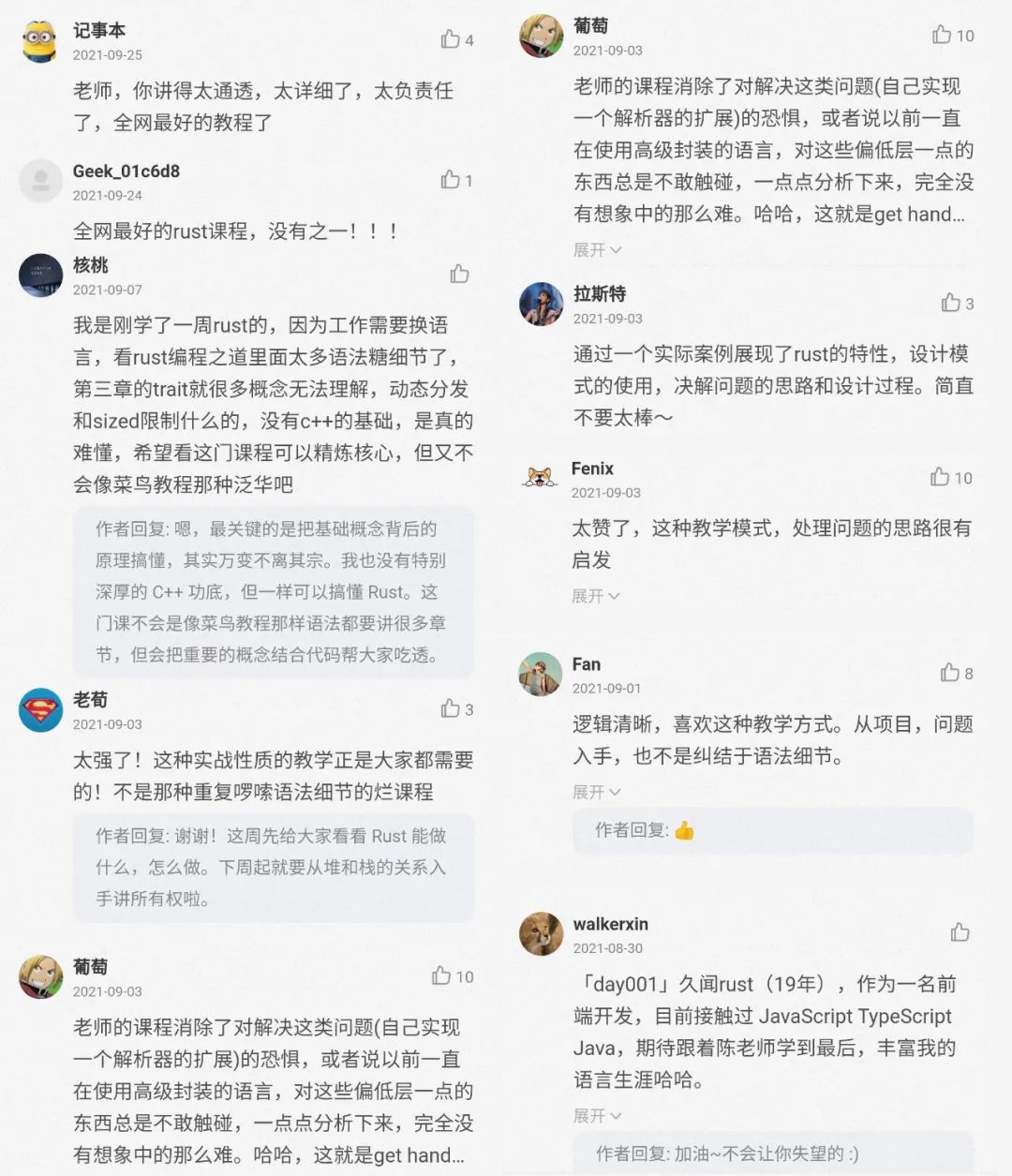 可以说,他对各个语言都了如指掌,这种资历的大佬能出来开课,把自己独特的 Rust 学习方法和经验共享出来,真的很难得。