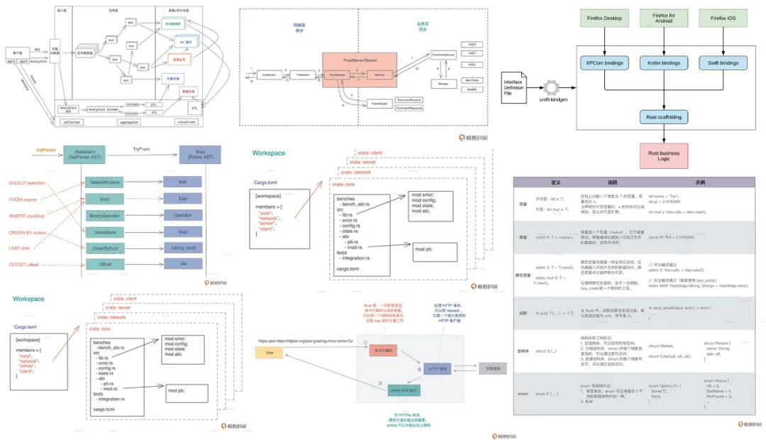 承担着「Rust 第一课」的使命,陈天讲得通俗易懂,把各个知识点类比到不同的语言中,设计了很多小而美的示例代码,引入 Rust 标准库的源代码进行分析,并且还精心绘制了大量的原理图。