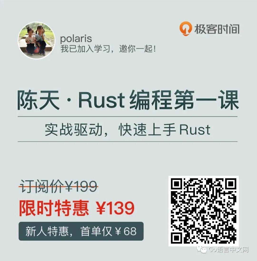感兴趣的朋友点击「阅读原文」,这一次,成功入门 Rust!
