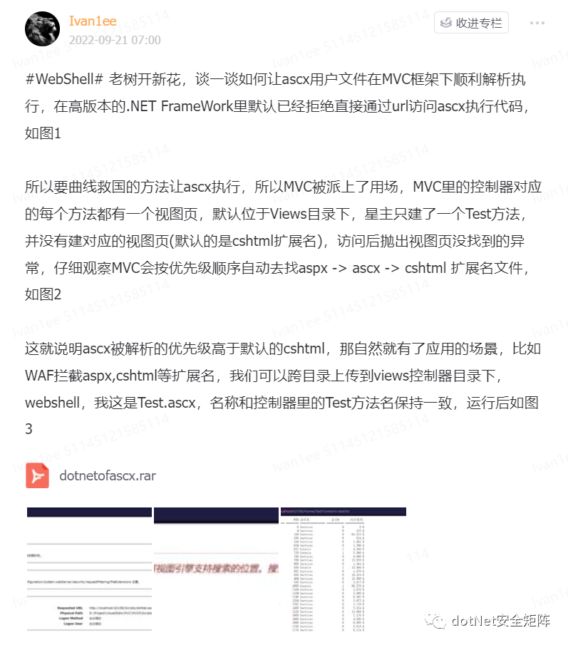 dotNet安全矩阵知识星球 — 聚焦于微软.NET安全技术,关注基于.NET衍生出的各种红蓝攻防对抗技术、分享内容不限于 .NET代码审计、 最新的.NET漏洞分析、反序列化漏洞研究、有趣的.NET安全Trick、.NET开源软件分享、. NET生态等热点话题、还可以获得阿里、蚂蚁、字节等大厂内推的机会.