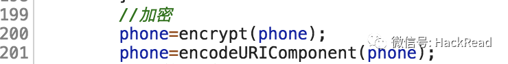 查看源码发现他这里对phone进行了前端加密,首先是通过encrypt加密然后对加密的内容进行url编码。前面的%3D的url解码就是=