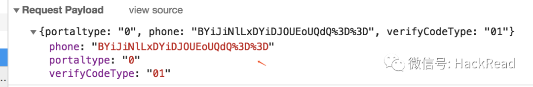 这里对手机号进行加密,可能是前端加密也可能是后端加密,我尝试接收多次验证码,看数据包中的phone是否会发生随机性的变化: