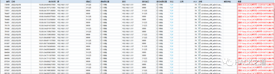 在建立连接后,伴随着大量重复ACK确认请求,怀疑是做心跳保持?