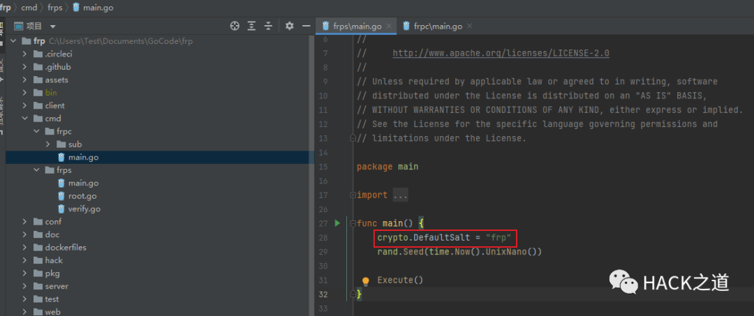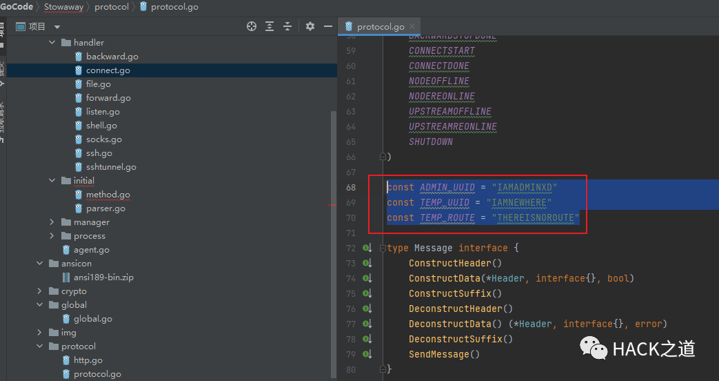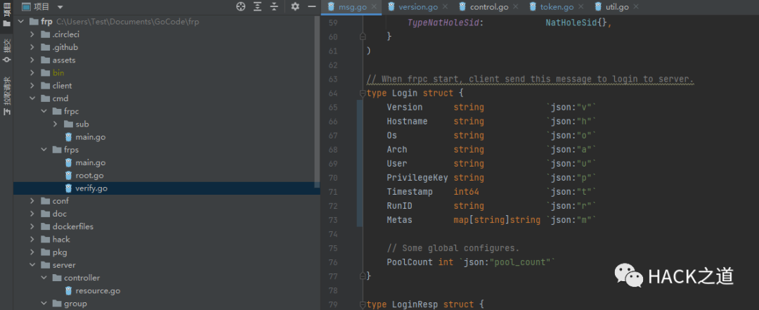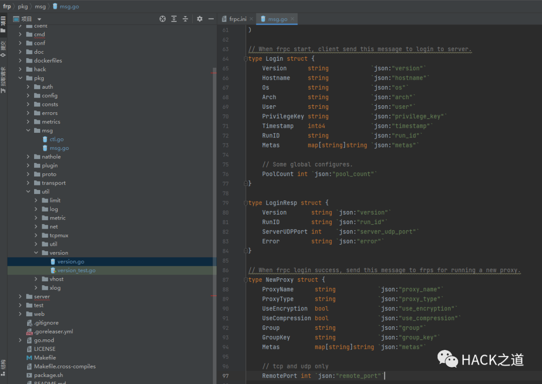 定位到frp\pkg\msg\msg.go文件,修改结构体中的特征