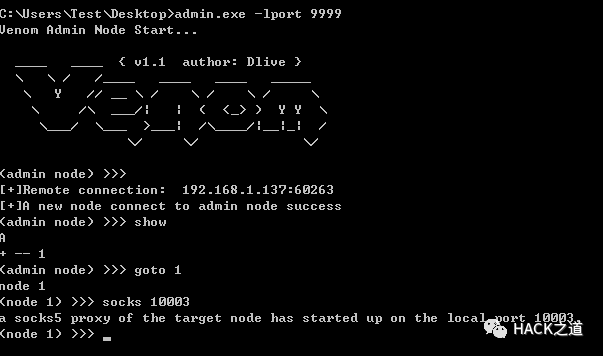 渗透测试人员可以使用Venom轻松地将网络流量代理到多层内网,并轻松地管理代理节点。