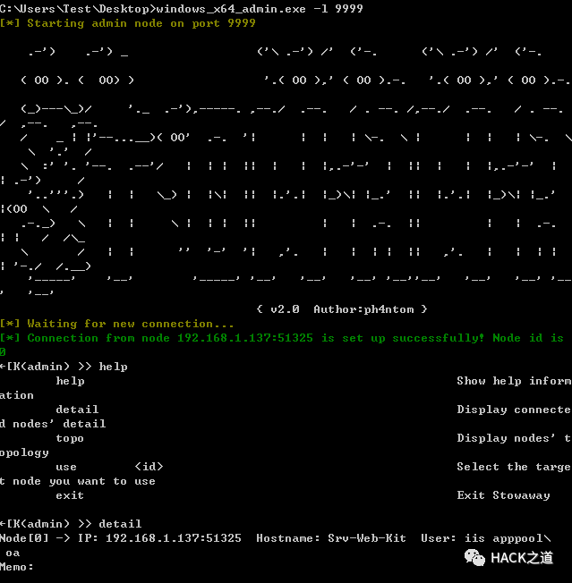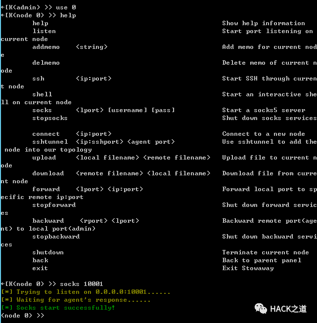 stowaway_admin -l 9999 -s [email protected]stowaway_agent -c 192.168.1.131:9999 -s [email protected]