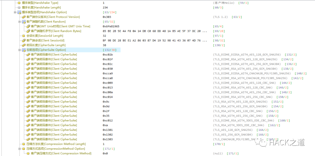 固定243字节长度的hello报文告诉服务端,frp支持的一系列加密算法套件