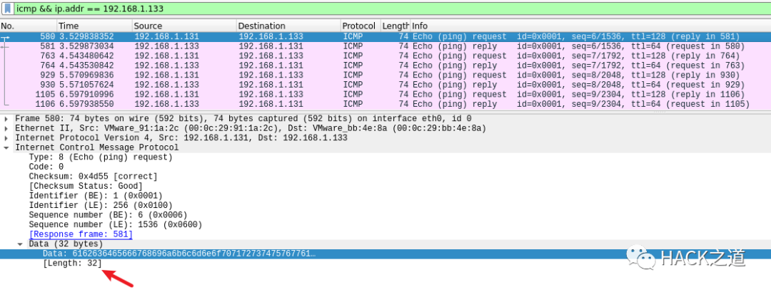 单组数据包Data字段长度,Windows为32 bytes,Linux下为48 bytes,并且请求包和响应包长度相同。