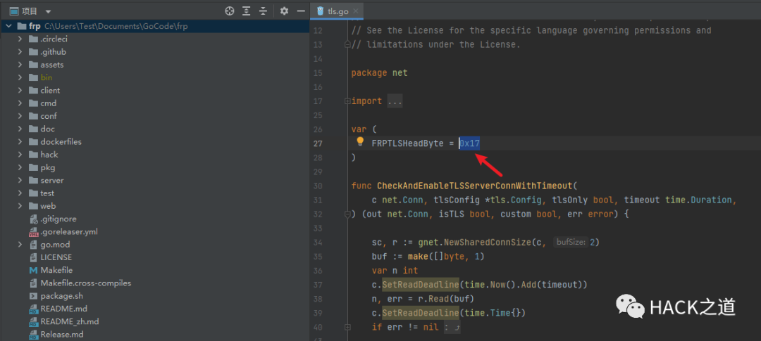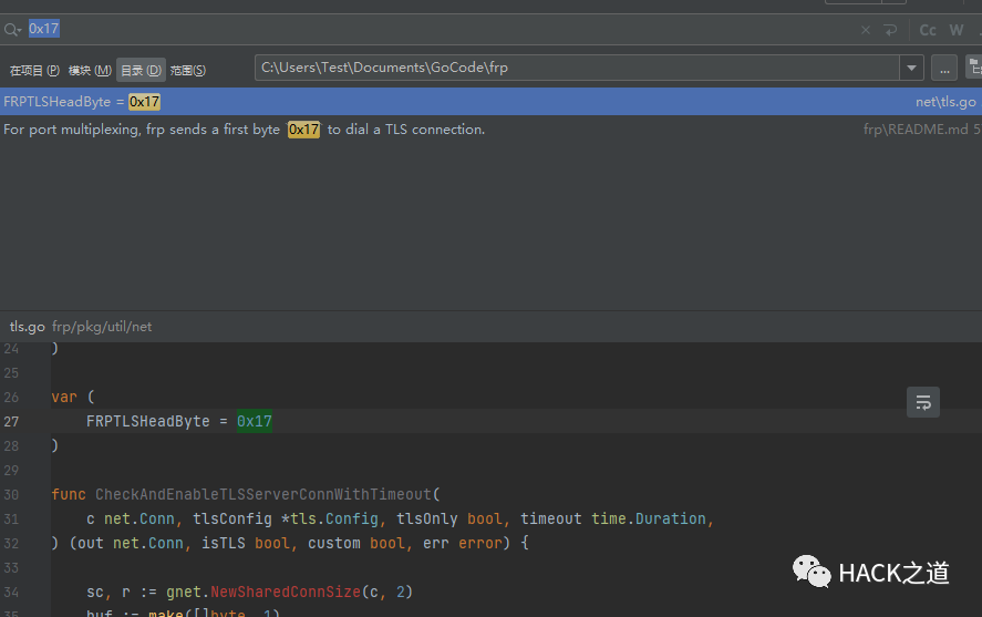 添加tls加密后,frp在协商前存在0x17的协议头部特征