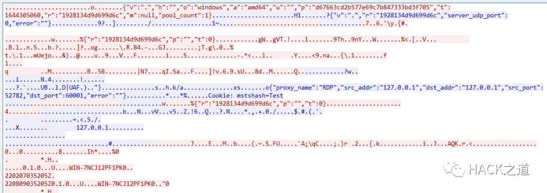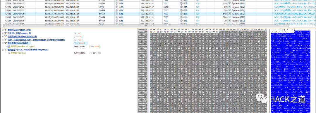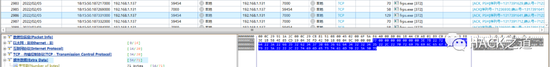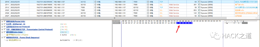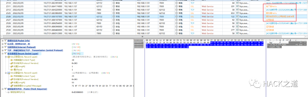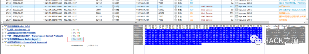 添加了tls和加密压缩后的frp在通信过程已经没有了版本信息和会话信息。不过,在建立连接的过程启用tls前,客户端携带“0x17”,请求服务端