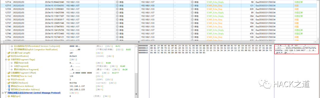pingtunnel在访问过程会把会话key和访问信息封装到icmp协议的data字段中。