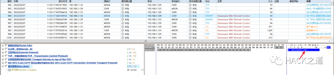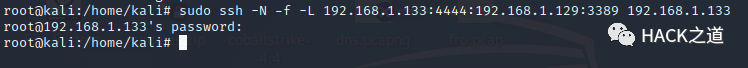 sudo ssh -N -f -L 192.168.1.133:4444:192.168.1.129:3389 192.168.1.133在利用ssh进行隧道转发的过程中,除第一个数据包会出现机器的用户名外,在流量过程中无其他明显指纹