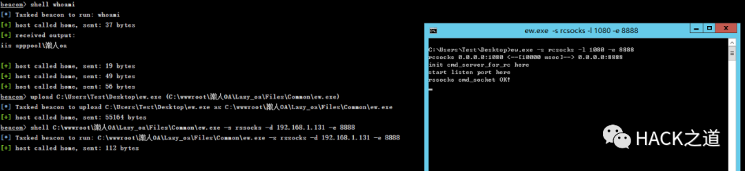 ew.exe -s rssocks -d 192.168.1.131 -e 8888ew.exe -s rcsocks -l 1080 -e 88882)二级级联