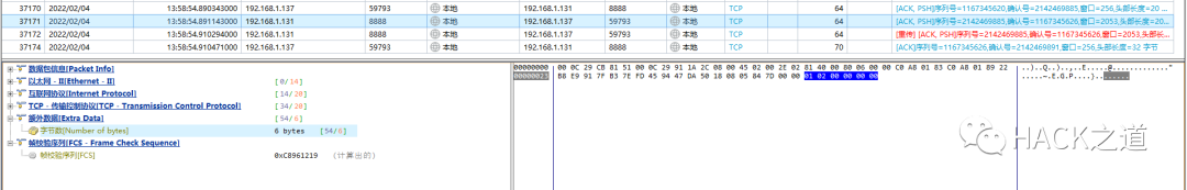 ew在建立连接的过程中,数据包存在额外的数据特征“xx xx 00 00 00 00”