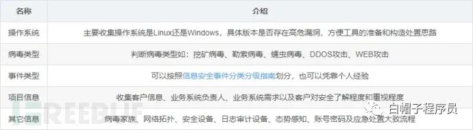 因为检测和处置的时间安排了明天,在这个时间里可以收集一下信息,这里给大家一个自己总结的信息收集表。