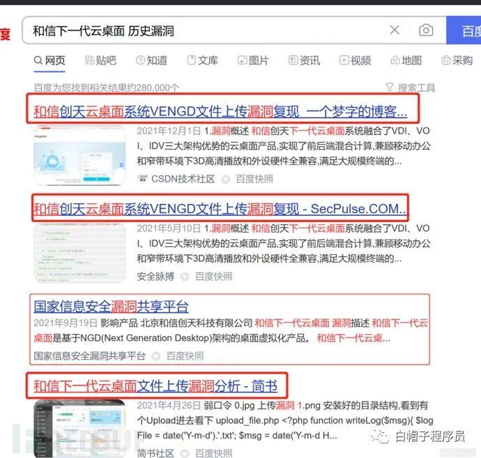 通过搜索引擎搜索和信下一代云桌面系统历史漏洞