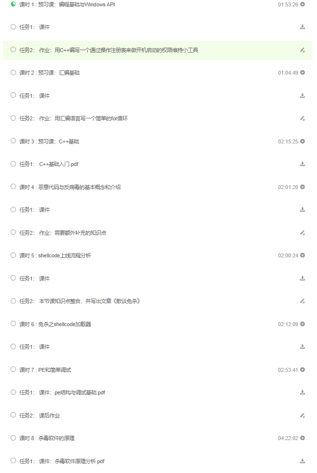 第二期新增:除了对课程进行了优化,另增加了2节课,免杀实战中的常见技法,dll文件及编写和反沙盒和反调试机制;常见的恶意代码中的加壳和常见的恶意代码中的脱壳。