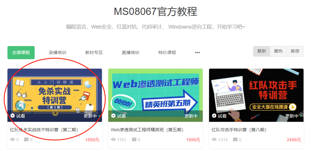 MS08067在这个背景下推出“免杀实战课”,有别于现今市面上一些急于求成,通过一些“小众工具”来实现免杀的方法和技巧。